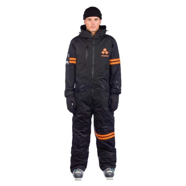 Dit ijzersterke OneSkee original Pro suit Black/Orange stripes beschermt je tegen de zwaarste wintersport omstandigheden. Dit model ski- en snowboard pak combineert broek en jas in één en loopt hiermee voorop qua stijl en ultieme bescherming. Veel van onze klanten die dit pak hebben gekocht, combineerden dit met één van onze waterdichte hoodies.