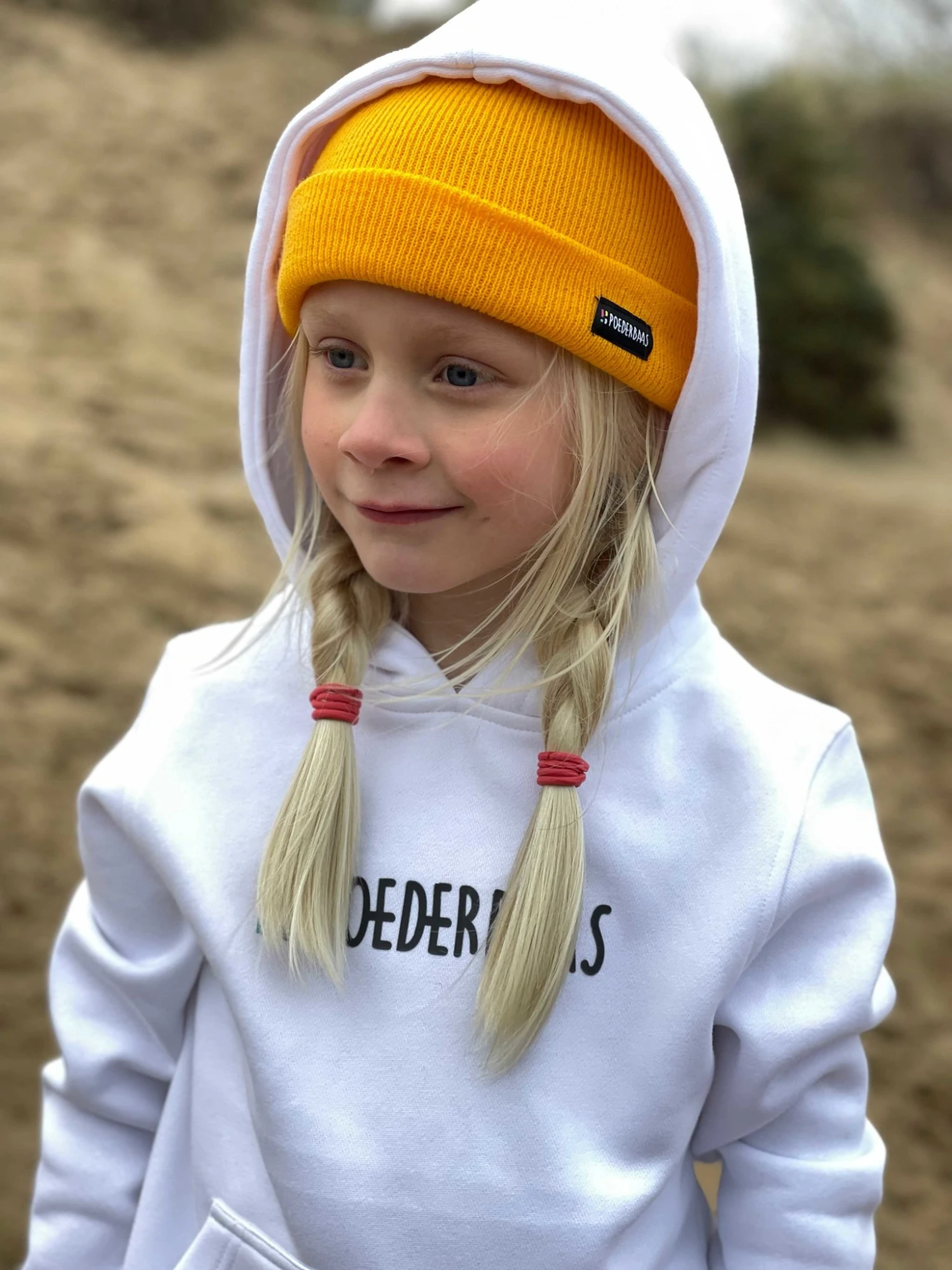 Prachtige beanie in volle kleur met Poederbaasje label, Gemaakt van kwalitatieve 100% acryl-wol.