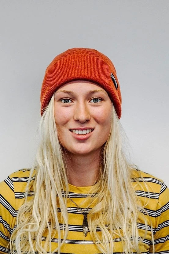 Comfortabele oranje muts van Poederbaas in diepe volle kleur.