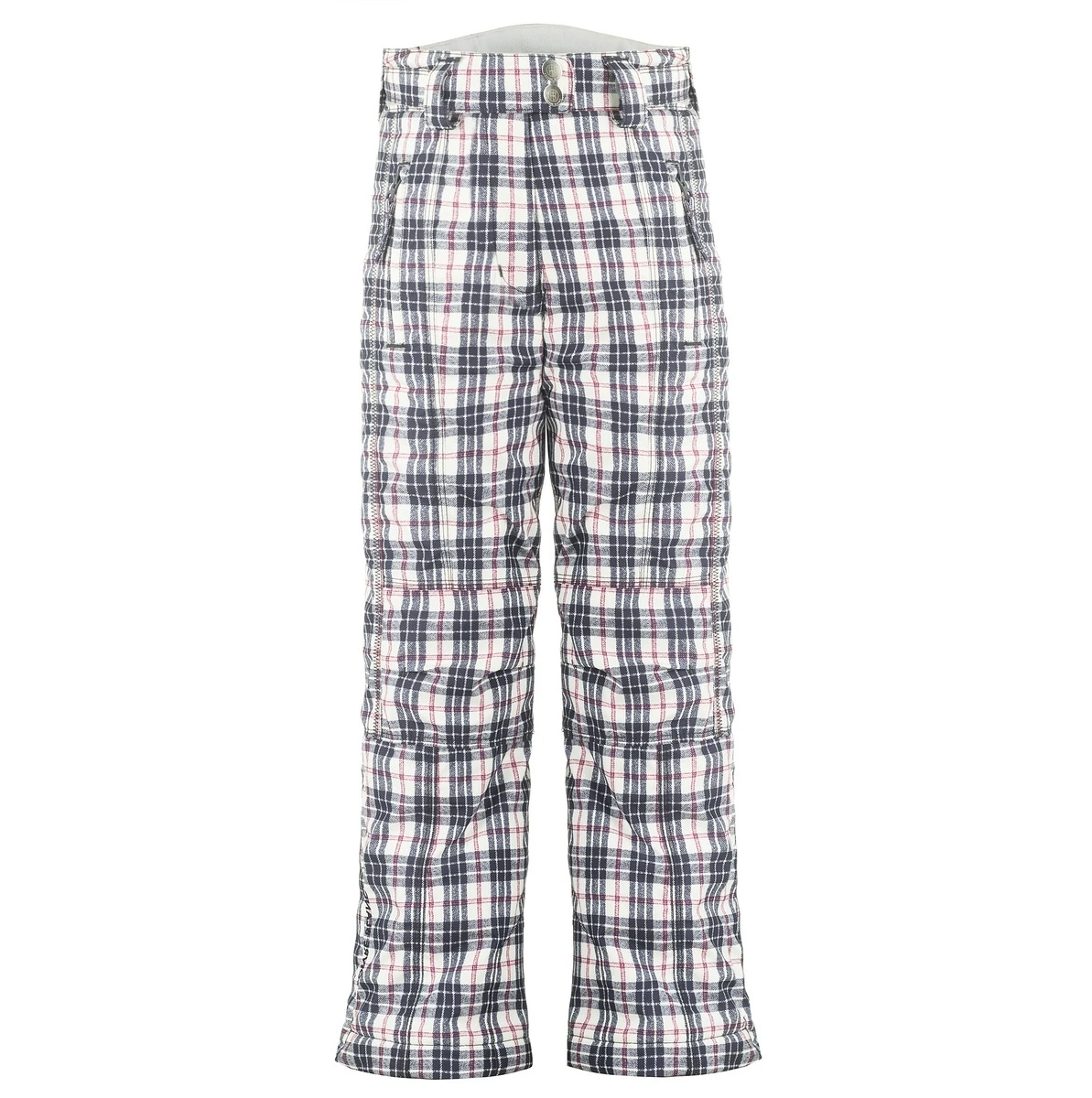elastische taille hoger in de rug en verstelbaar door middel van klittenband, ritszakken, opening met rits onderaan het been met kruisje, binnenste poederhoes, verstevigde binnenkant onderbeen
