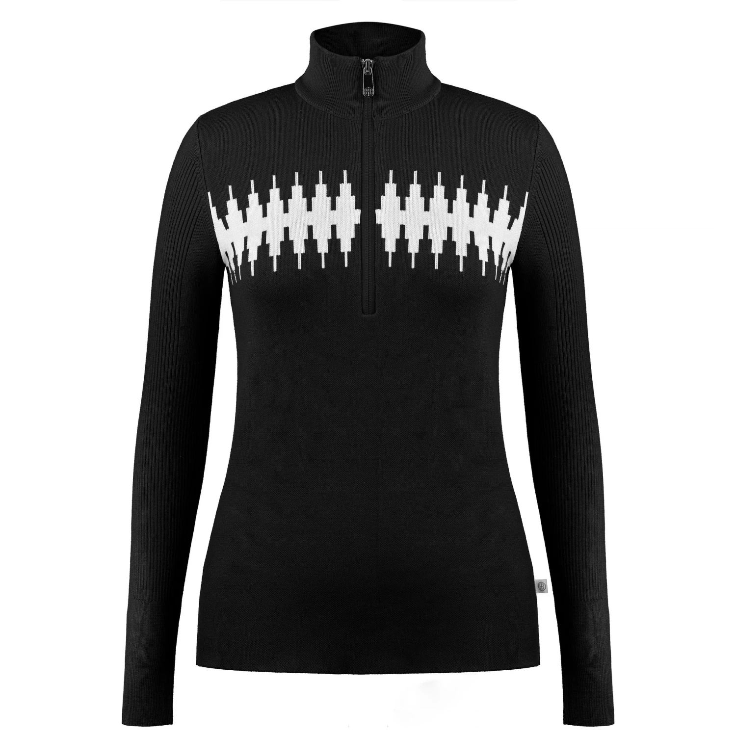 – fijne jacquardstructuur bij mouw en kraag